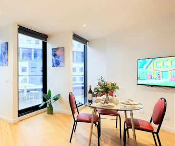 Enjoy elevated comfort and city views in the One Bedroom Penthouse Apartment at Arrow on Swanston, perfect for couples, business travellers, or long‑stay guests. This bright, spacious penthouse features a private bedroom with a queen bed, a separate living area with a sofa bed, and floor‑to‑ceiling windows that fill the space with natural light. Step outside to your expansive private balcony, ideal for relaxing above Melbourne’s skyline. The penthouse includes a fully equipped kitchenette, free Wi‑Fi, air conditioning, a mirrored wardrobe, a flat‑screen TV, and a modern private bathroom. Located close to Melbourne CBD, RMIT, and the University of Melbourne, and with a tram stop right at the doorstep, this penthouse offers both convenience and exceptional value. Guests also enjoy access to the on-site pool, sauna, gym, self-service laundry, hair salon and cafe.